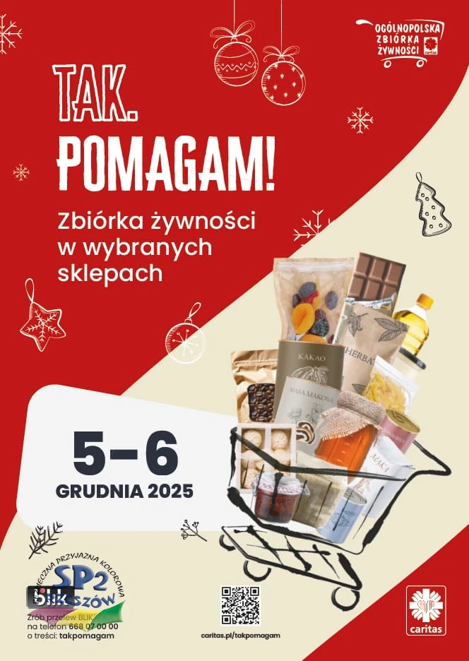 5 grudnia obchodzimy Międzynarodowy Dzień Wolontariusza, i ogromnie cieszymy się, że właśnie tego dnia uczniowie naszej szkoły przyłączyli się do akcji Caritas „Tak, pomagam”. Zadaniem wolontariuszy było rozdawanie ulotek oraz zachęcanie klientów sklepu Biedronka do zakupu produktów z długim terminem przydatności i przekazania ich osobom potrzebującym.